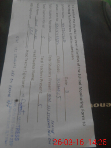 | Attendance Register | Head Teacher | MEA with School | Visit Proof |