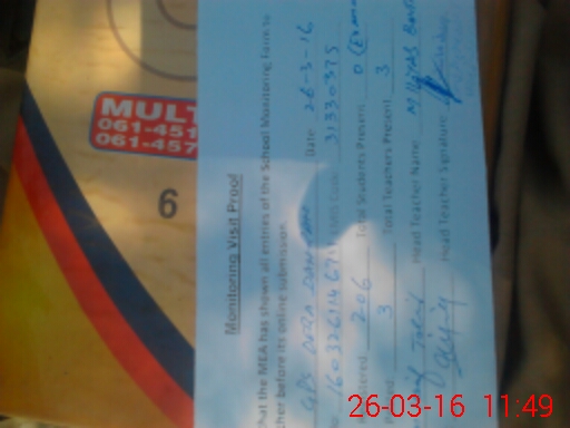 | Attendance Register | Head Teacher | MEA with School | Visit Proof |
