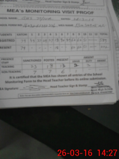 | Attendance Register | Head Teacher | MEA with School | Visit Proof |