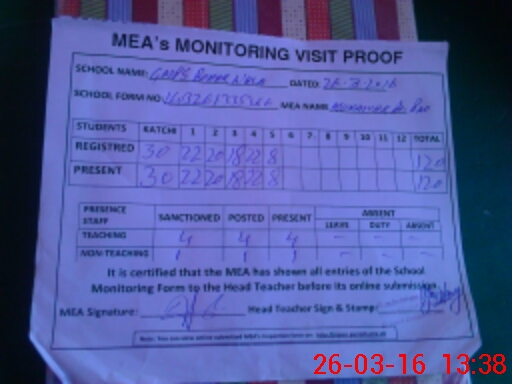| Attendance Register | Head Teacher | MEA with School | Visit Proof |