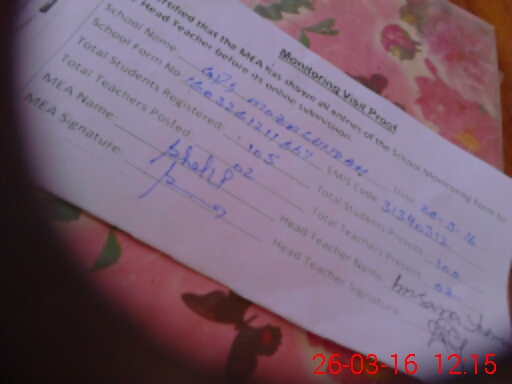 | Attendance Register | Head Teacher | MEA with School | Visit Proof |