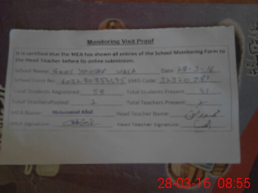 | EMIS Code: 32320781 | Name of School: GPS YOUSUF WALA | |||