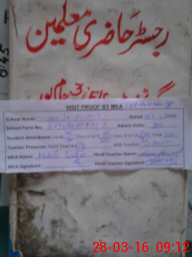 | Attendance Register | Head Teacher | MEA with School | Visit Proof |