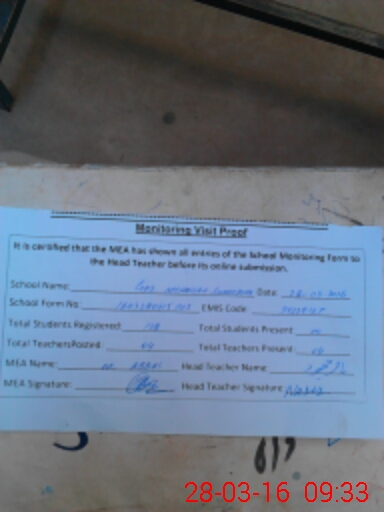 | Certified that this School was Inspected by the Undersigned MEA/DMO Today and the Information Stated Above is as Per Record. | |||||