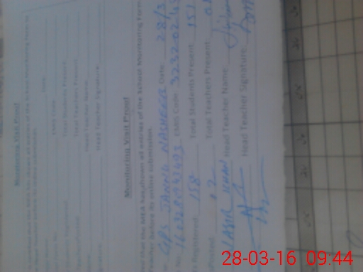 | Monitoring Date: 28-03-2016 | Start Time: 28-03-2016 09:30 AM | End Time: 28-03-2016 09:46 AM | Name of MEA: Na**** Kh**** | |