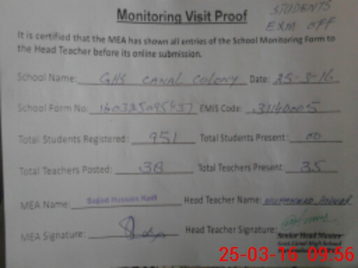 | EMIS Code: 31140005 | Name of School: GHS CANAL HAROON ABAD | |||