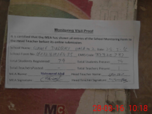 | EMIS Code: 32320787 | Name of School: GPS DADRAY WALA NO. 2 | |||