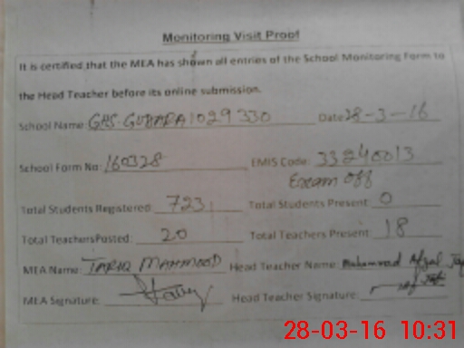| Attendance Register | Head Teacher | MEA with School | Visit Proof |