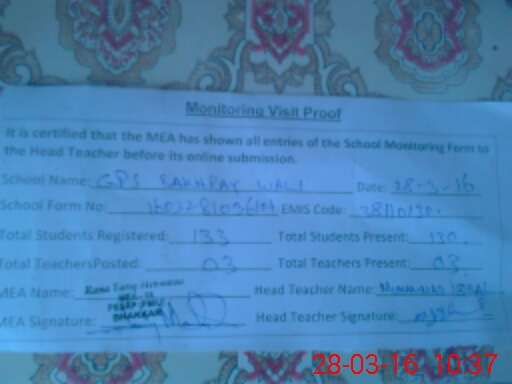 | EMIS Code: 38110123 | Name of School: GPS BAKHRAY WALI | |||
