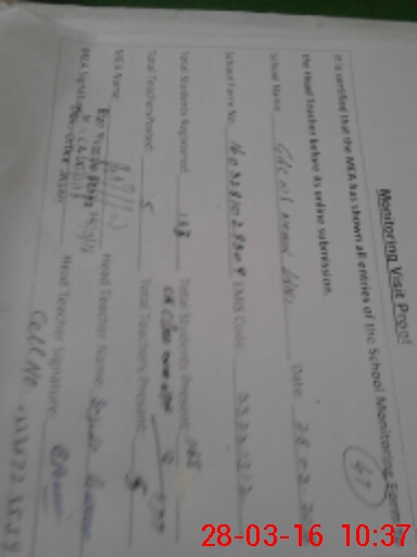 | Attendance Register | Head Teacher | MEA with School | Visit Proof |