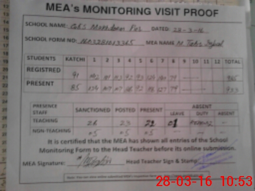 | Certified that this School was Inspected by the Undersigned MEA/DMO Today and the Information Stated Above is as Per Record. | |||||