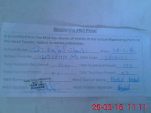 | EMIS Code: 38110121 | Name of School: GPS DAJAL GHARBI | |||