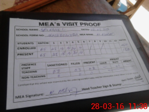 | Attendance Register | Head Teacher | MEA with School | Visit Proof |
