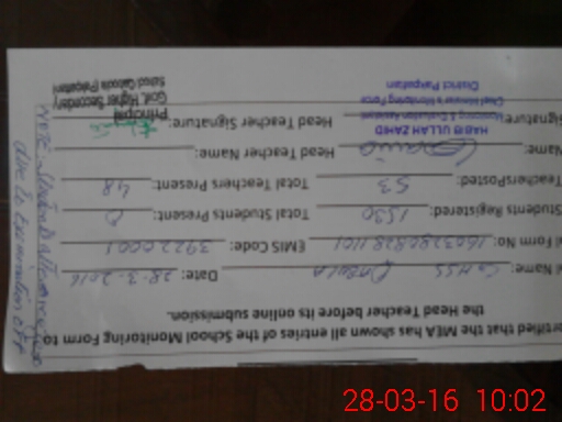 | Name: Ah**** Ri**** Fa**** Designation: (School Headmaster's/Headmistress's) PRINCIPAL Phone/Cell Number: 03**** |