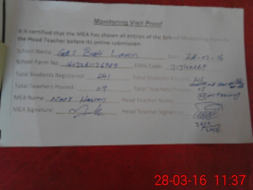 | Attendance Register | Head Teacher | MEA with School | Visit Proof |