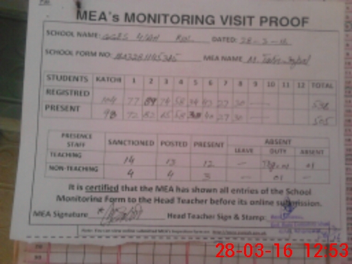 | Attendance Register | Head Teacher | MEA with School | Visit Proof |