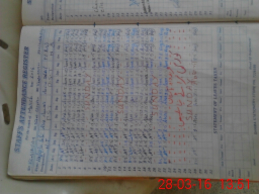 | CNIC | Full Name | Designation | R/C | Absence During Last Calender Month |