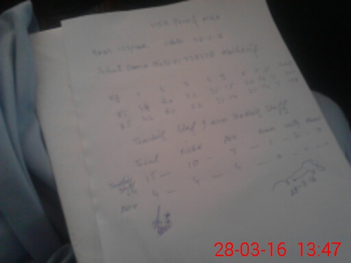 | Monitoring Date: 28-03-2016 | Start Time: 28-03-2016 01:20 PM | End Time: 28-03-2016 01:50 PM | Name of MEA: MU**** SH**** | |