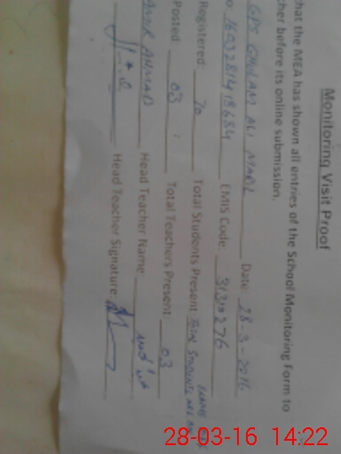 | EMIS Code: 31310276 | Name of School: GPS GHULAM ALI MARIL | |||