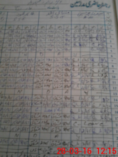 | CNIC | Full Name | Designation | R/C | Absence During Last Calender Month |