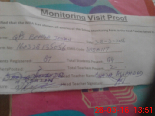 | Attendance Register | Head Teacher | MEA with School | Visit Proof |