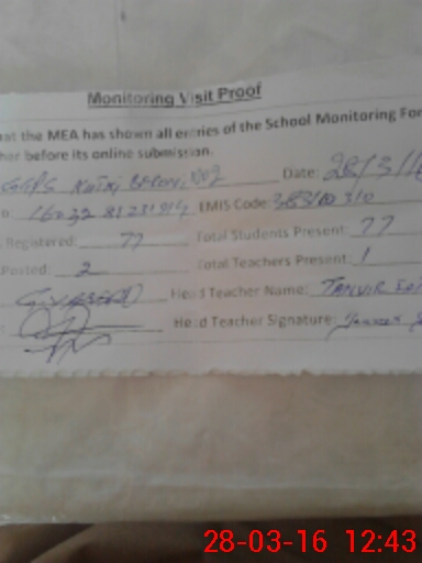 | Certified that this School was Inspected by the Undersigned MEA/DMO Today and the Information Stated Above is as Per Record. | |||||