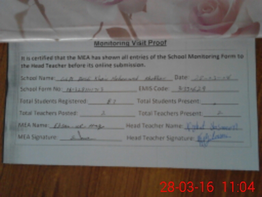 | Certified that this School was Inspected by the Undersigned MEA/DMO Today and the Information Stated Above is as Per Record. | |||||