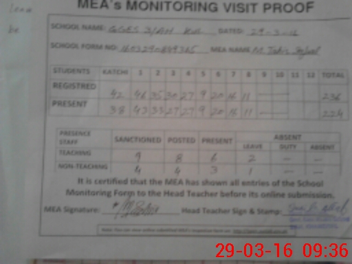 | Attendance Register | Head Teacher | MEA with School | Visit Proof |