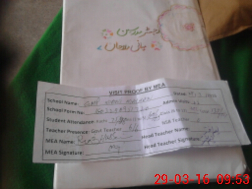 | Attendance Register | Head Teacher | MEA with School | Visit Proof |