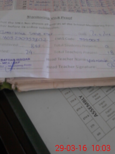 | Attendance Register | Head Teacher | MEA with School | Visit Proof |