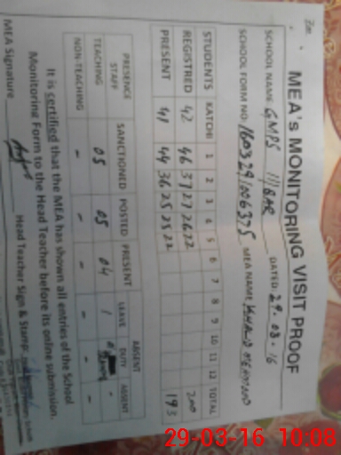 | Attendance Register | Head Teacher | MEA with School | Visit Proof |