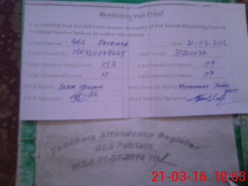 | EMIS Code: 37320036 | Name of School: GES PATRIATA | |||