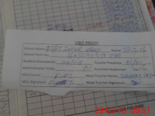 | Attendance Register | Head Teacher | MEA with School | Visit Proof |