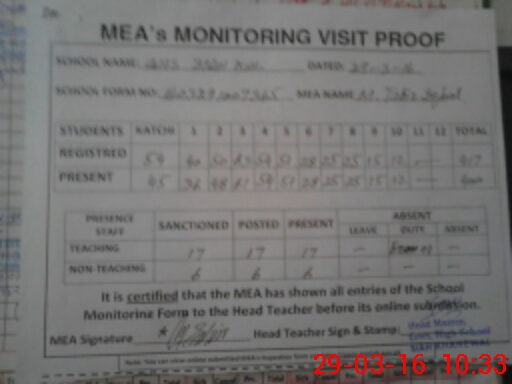 | Certified that this School was Inspected by the Undersigned MEA/DMO Today and the Information Stated Above is as Per Record. | |||||