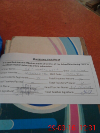 | Attendance Register | Head Teacher | MEA with School | Visit Proof |