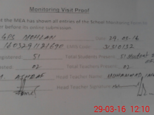 | EMIS Code: 31310132 | Name of School: GPS MOHLAN | |||