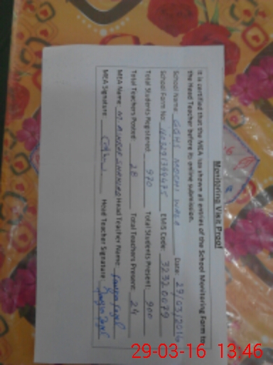 | Certified that this School was Inspected by the Undersigned MEA/DMO Today and the Information Stated Above is as Per Record. | |||||