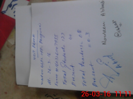 | Total no. of Classrooms: 5 No. of Classrooms Used for Teaching: 5 No. of Classrooms Storing Old Furniture, FTBs, etc: 0Comments if Any: Nsb account open |