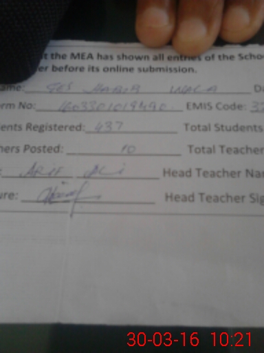 | Name: Na**** Ab**** Designation: (School Headmaster's/Headmistress's) E.ST V Phone/Cell Number: 03**** |