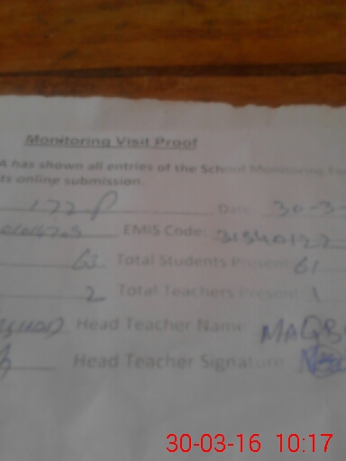 | Attendance Register | Head Teacher | MEA with School | Visit Proof |