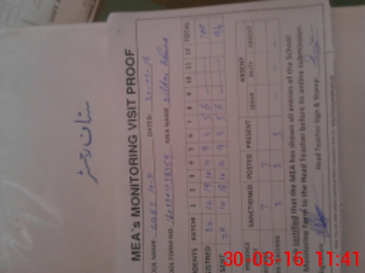 | Attendance Register | Head Teacher | MEA with School | Visit Proof |