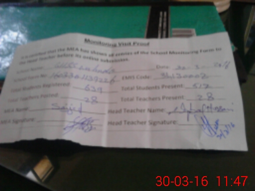 | Attendance Register | Head Teacher | MEA with School | Visit Proof |