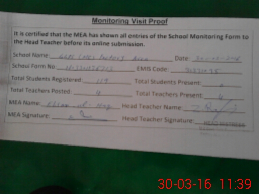 | Certified that this School was Inspected by the Undersigned MEA/DMO Today and the Information Stated Above is as Per Record. | |||||