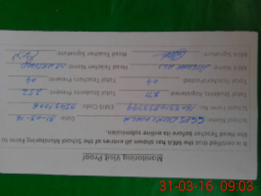 | Certified that this School was Inspected by the Undersigned MEA/DMO Today and the Information Stated Above is as Per Record. | |||||