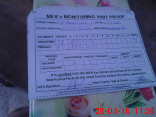 | Attendance Register | Head Teacher | MEA with School | Visit Proof |
