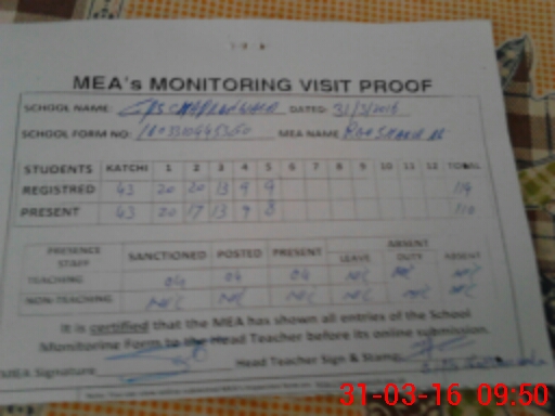 | Attendance Register | Head Teacher | MEA with School | Visit Proof |