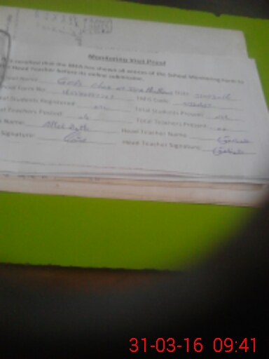 | Remarks (Use Separate Page if Required): Consolidated School School revised due to mistake of data in total no of classrooms and toilets No data of NSB and FTF available Head reached late so visit Proof was signed by male teacher | |||||