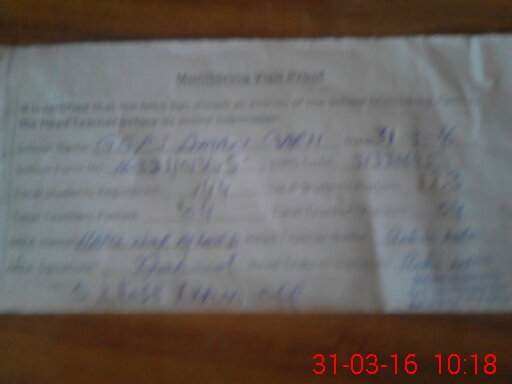 | Attendance Register | Head Teacher | MEA with School | Visit Proof |