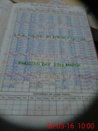 | CNIC | Full Name | Designation | R/C | Absence During Last Calender Month |