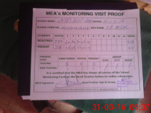 | Attendance Register | Head Teacher | MEA with School | Visit Proof |